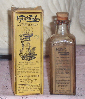 Medical Vapo-Cresolene Liquid Inhalant Bottle and Box