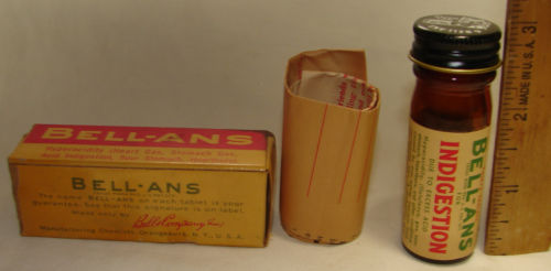 Title (ebay affiliate link): Vintage BELL-ANS Indigestion Bottle Sealed Amber Glass w Label & Box,EMBOSSED