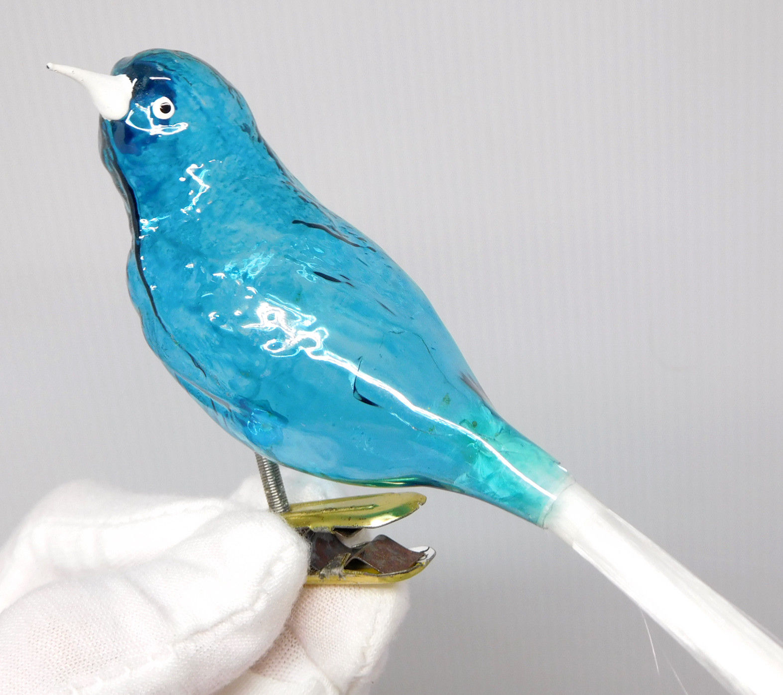 Title (ebay affiliate link): Vintage Clear Blue Blown Glass Bird Clip Christmas Ornament #218t