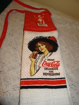Title (ebay affiliate link): Vintage Coke Coca Cola Kitchen stove towel w/ tags lady w/ drink NEW