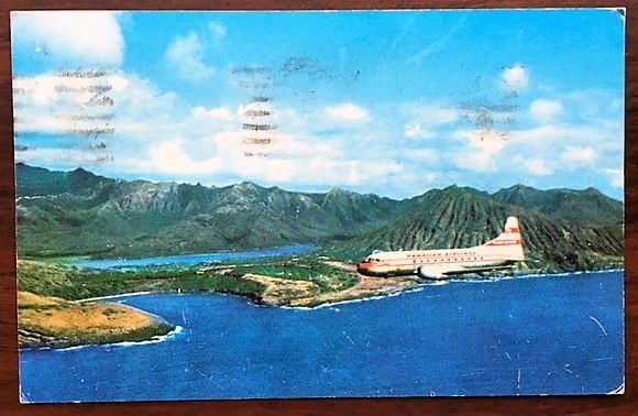Title (ebay affiliate link): HAWAIIAN AIRLINES Convair 340 In Flight Along Oahu Coastline, 1957 pmk