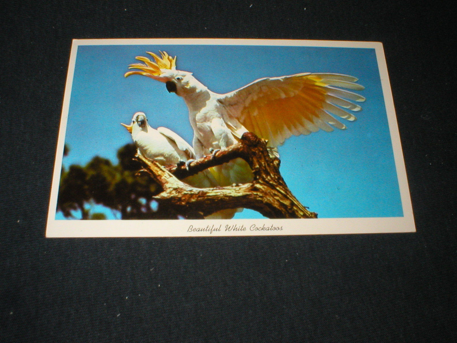 Title (ebay affiliate link): MIAMI FLORIDA PARROT JUNGLE <> Beautiful White Cockatoos Bird Postcard