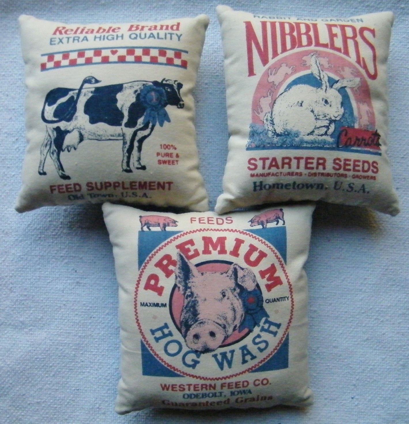 Title (ebay affiliate link): PRIMITIVE BOWL FILLERS ORNIES TUCKS FEED SACK MINI PILLOWS LOT STUFFED NEW #5