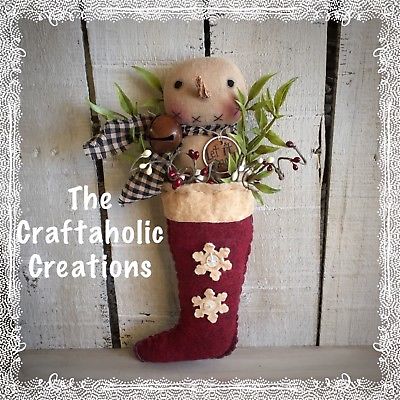Title (ebay affiliate link): * primitive raggedy doll * SNOWMAN snowflake black tan STOCKING red LET IT SNOW