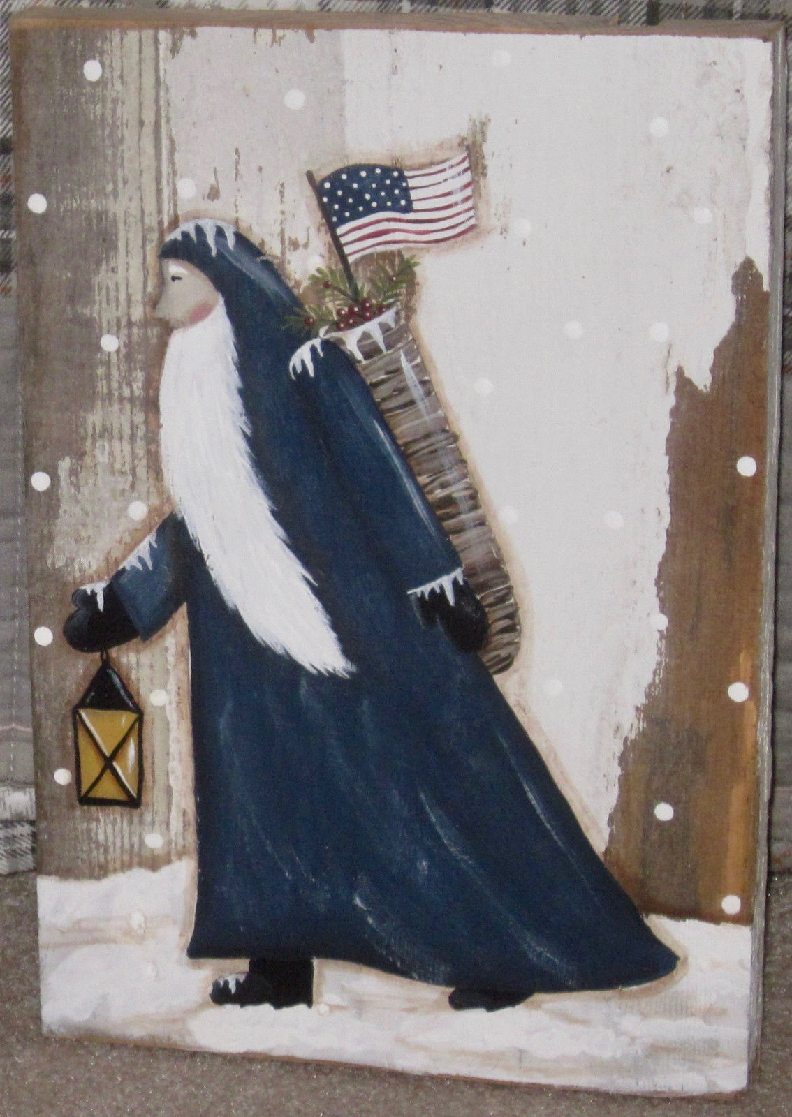 Title (ebay affiliate link): *~*PRIMITIVE*~* HP FOLK ART PRIM BELSNICKEL SANTA *~* FLAG *~* RECLAIMED WOOD