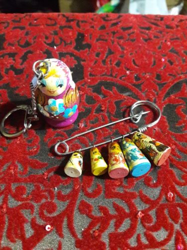 VINTAGE Nesting Dolls Pin And Keychain..Santa