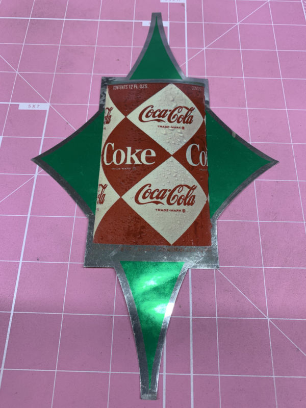 Title (ebay affiliate link): Vintage 1968 COCA COLA CAN - Diamond-Shape Shiny Metallic Decal Sticker 6"x10"