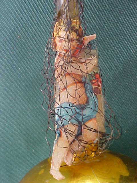 Vintage Blown Glass Antique Christmas Ornament Starburst Drop w Angel & Tinsel