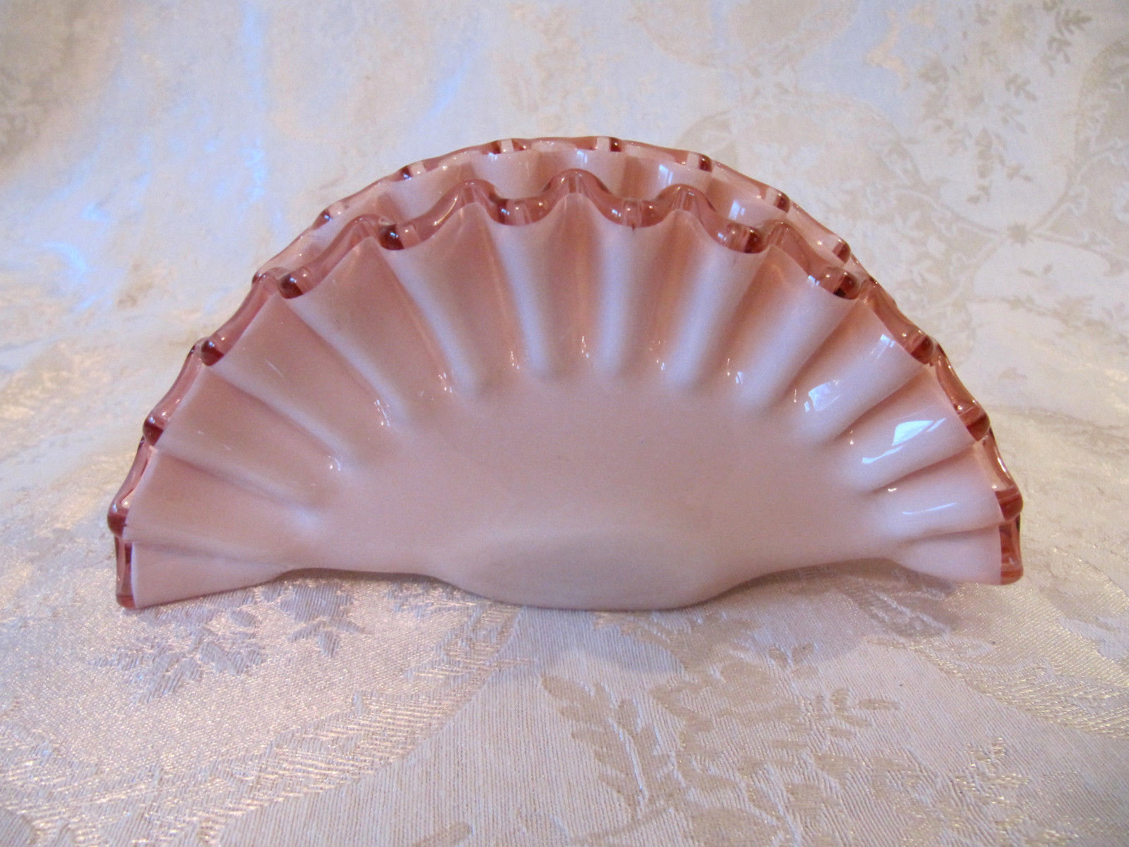 Vintage FENTON Milk Glass Vase Peach /Pink Crest Melon