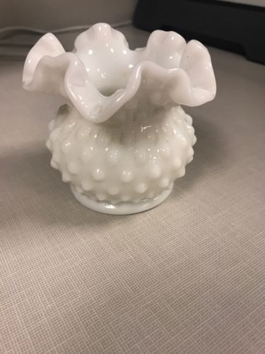 Title (ebay affiliate link): VINTAGE MILK GLASS HOBNAIL RUFFLED RIM VOTIVE / TRINKET VASE, MINT CONDITION