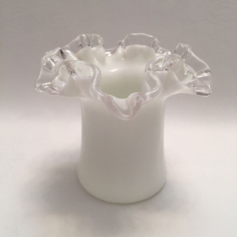 Title (ebay affiliate link): Vintage Fenton White Milk Glass w/Clear Ruffled Edges Hat - Dish 4" Mint