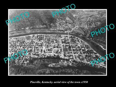 OLD LARGE HISTORIC PHOTO PINEVILLE KENTUCKY, AERIAL VIEW OF THE TOWN c1950