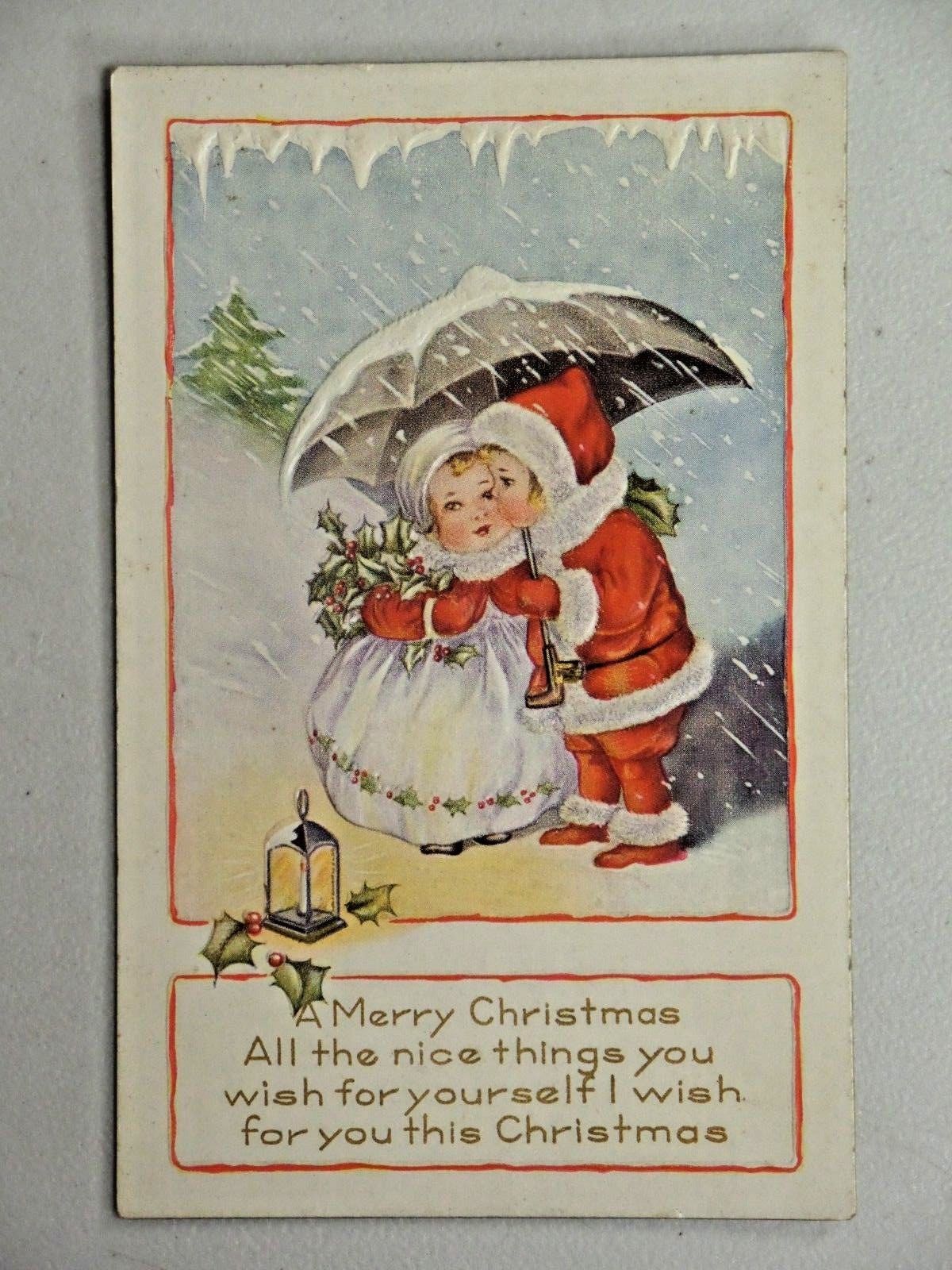 Title (ebay affiliate link): A Merry Christmas Embossed Whitney Made Postcard Children in Santa Suit 3037