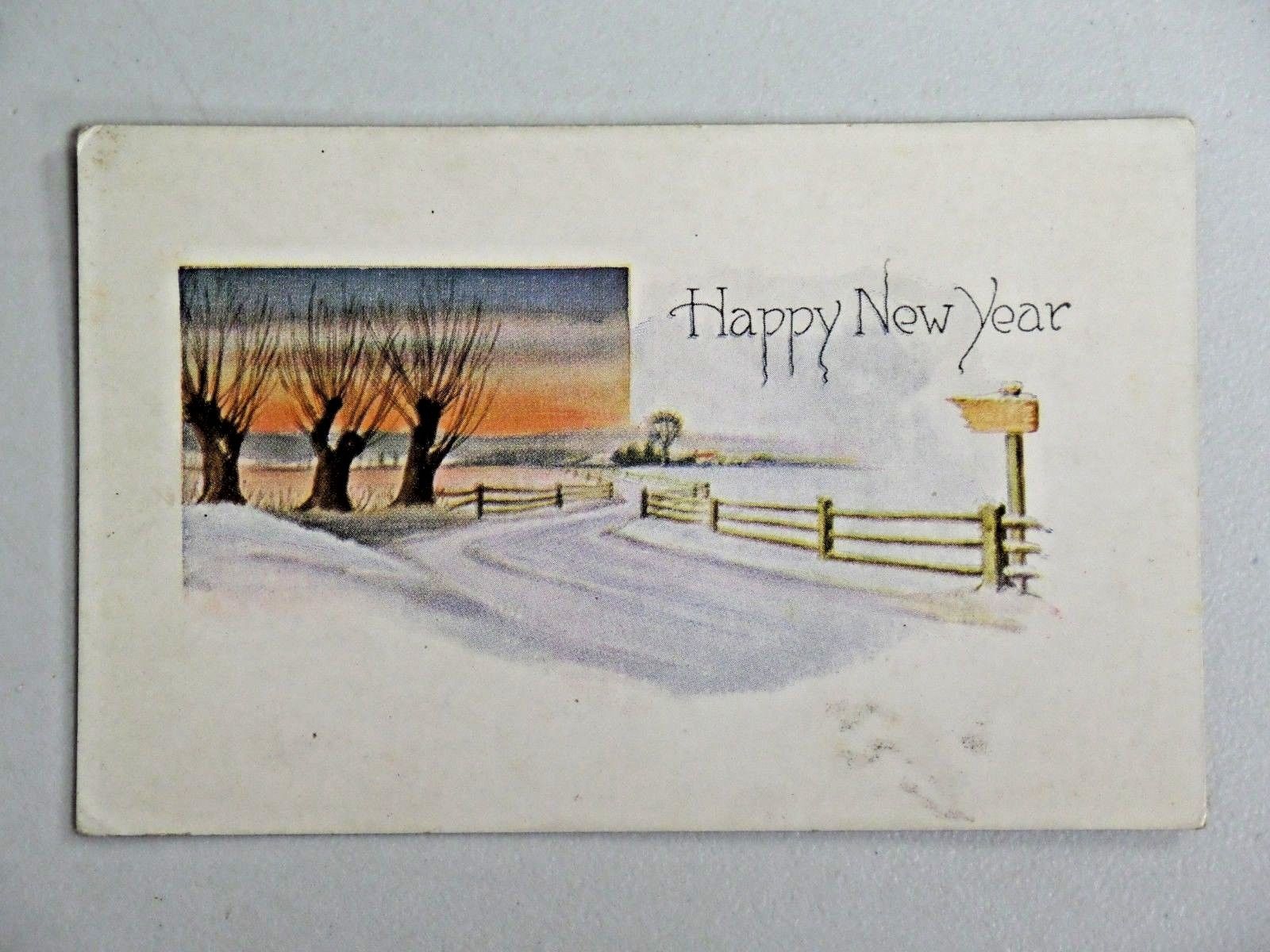 Vtg. The Pink of Perfection Postcard Happy New Year Winter Scene Unposted 3005