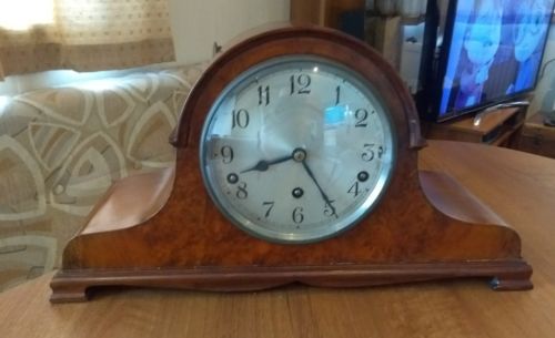 ANTIQUE BURR WALNUT GARRARD MANTEL CLOCK