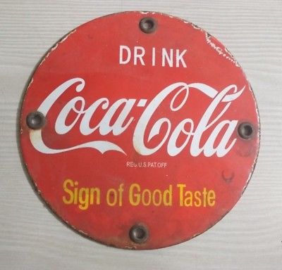 Title (ebay affiliate link): PORCELAIN SIGN DRINK COCA-COLA SIZE- 5" INCH DIA APPROX