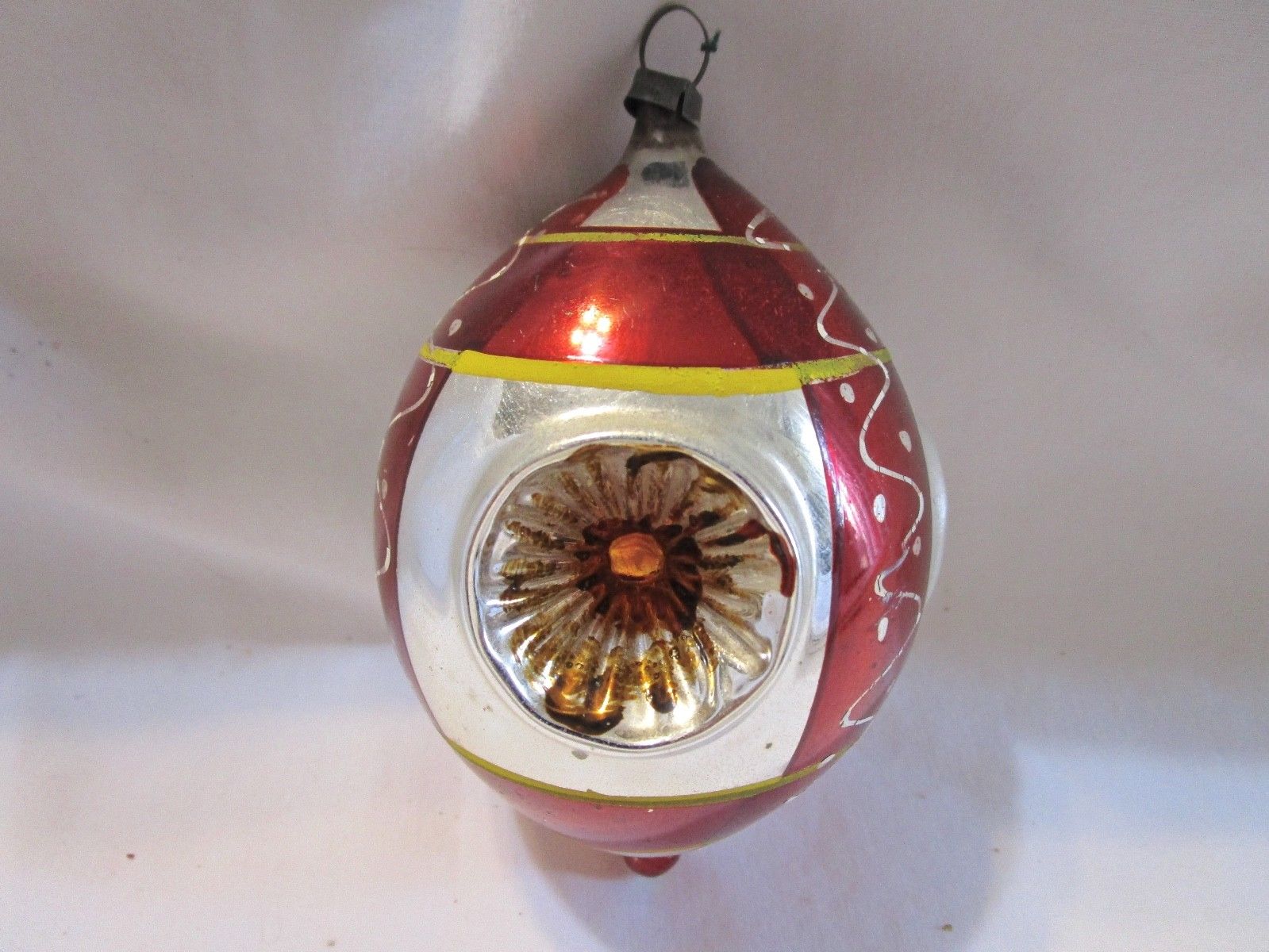 Title (ebay affiliate link): VINTAGE ANTIQUE ORNAMENT BLOWN GLASS TRIPLE INDENT TEARDROP POLAND GERMANY ?