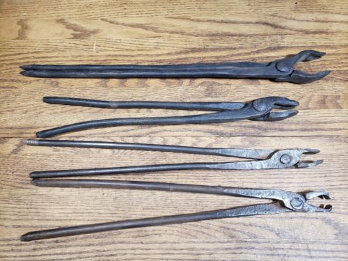 4 Blacksmith tongs vintage blacksmithing forge anvil tools nippers lot