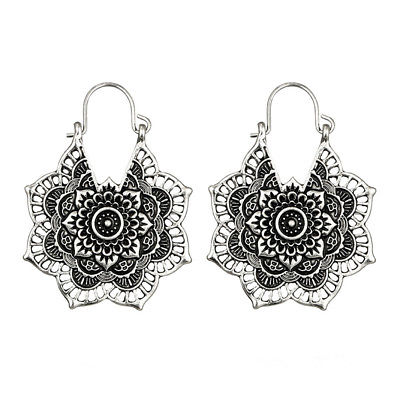 Antique silver Gypsy Indian Tribal Ethnic Hoop Dangle Mandala Earrings Boho