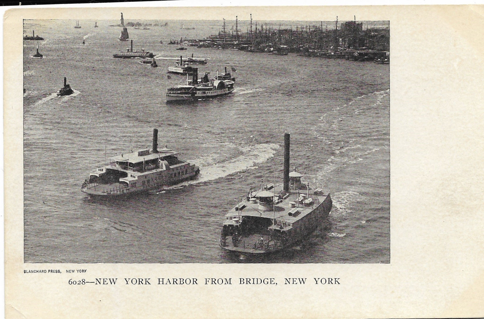 Title (ebay affiliate link): UDB postcard c1907, Blanchard Press., New York Harbor from Bridge, New York City