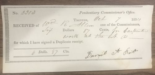 Title (ebay affiliate link): 1834 Receipt for payment from Trenton NJ State Prison