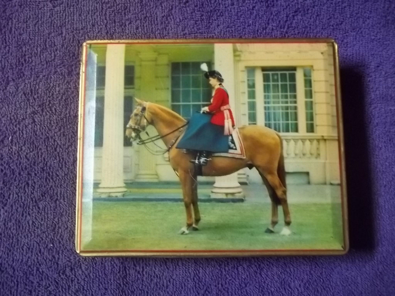 Title (ebay affiliate link): VINTAGE SHARPS TOFFEE ENGLAND QUEEN ELIZABETH ON HORSEBACK CANDY TIN *EMPTY*