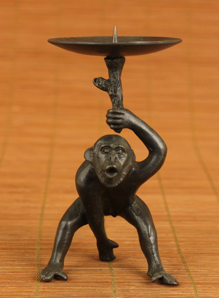 Title (ebay affiliate link): chinese old bronze hand carved monkey statue oil lamp candle stick