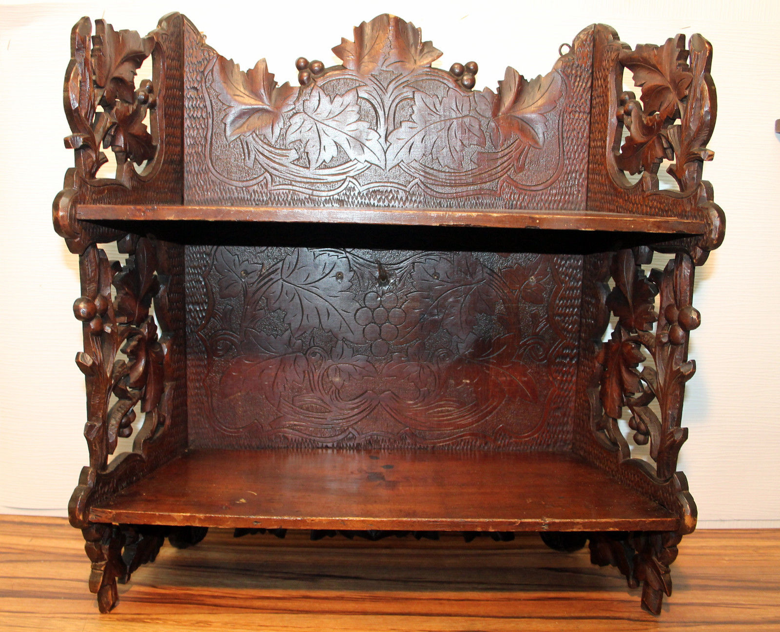 Title (ebay affiliate link): *Antique Wall Shelf in Wood hand carved resealable*