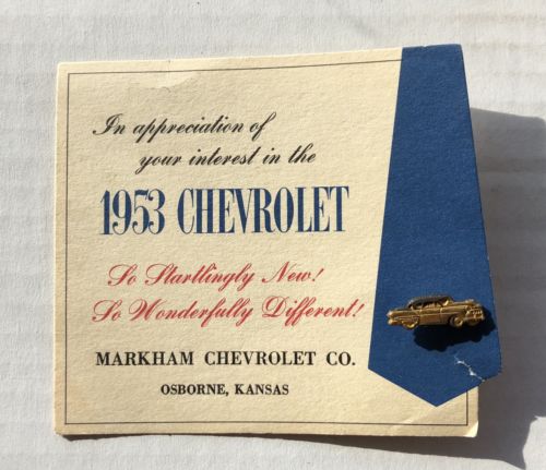 Title (ebay affiliate link): 1953 CHEVROLET Car Advertising Card & Tie Tack Markham CHEVROLET Osborne Kansas