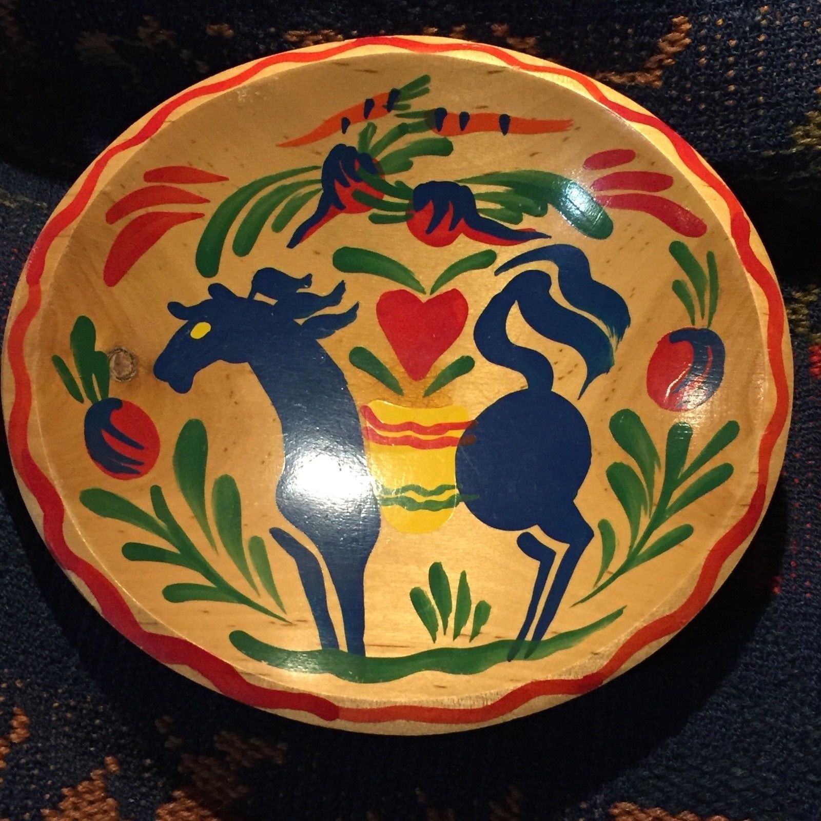 Title (ebay affiliate link): Peter Hunt Folk Art Wood Bowl w/ Horse Heart Handpainted & Label