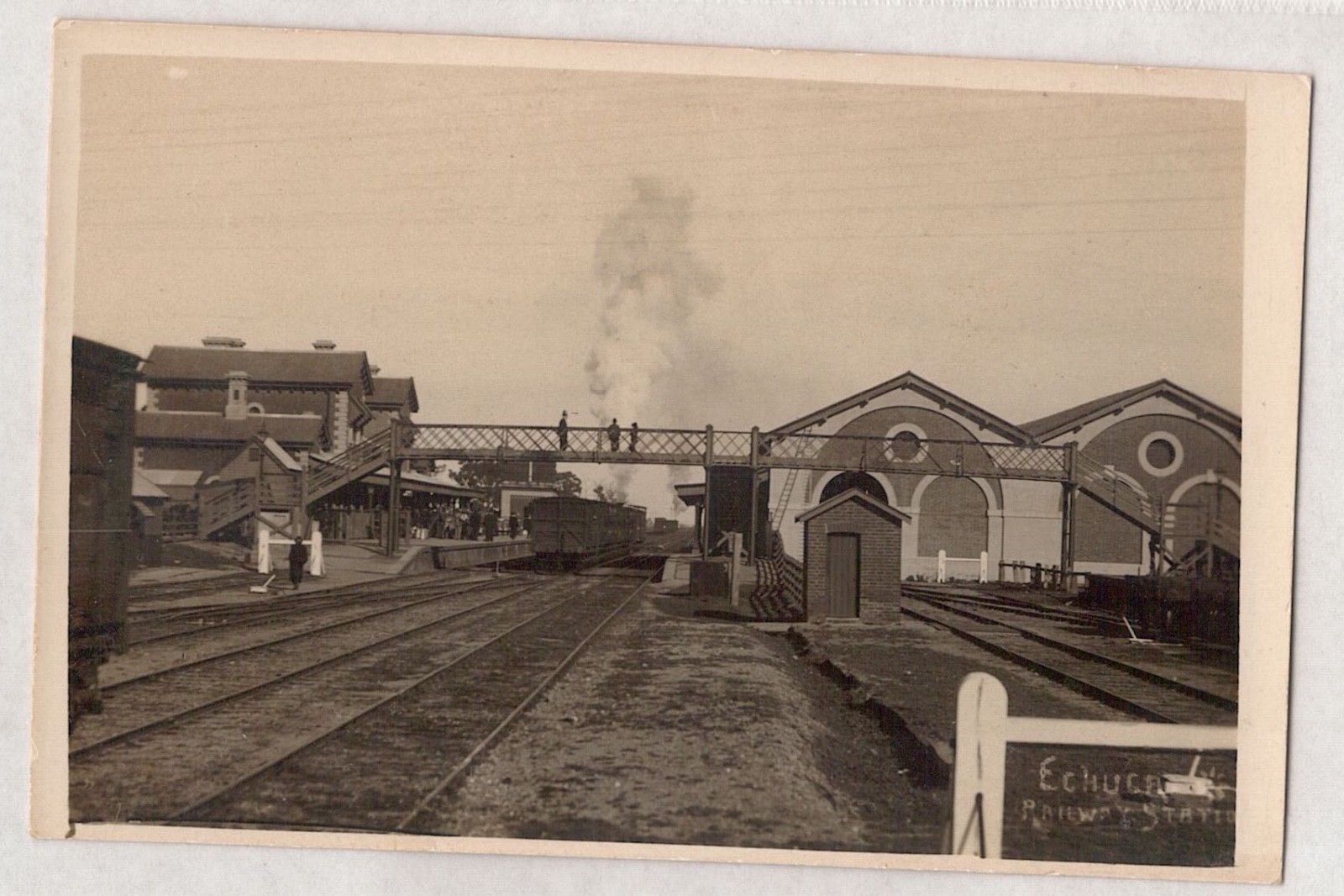 VINTAGE POSTCARD RPPC ECHUCA RAILWAY STATION VICTORIA 1900s
