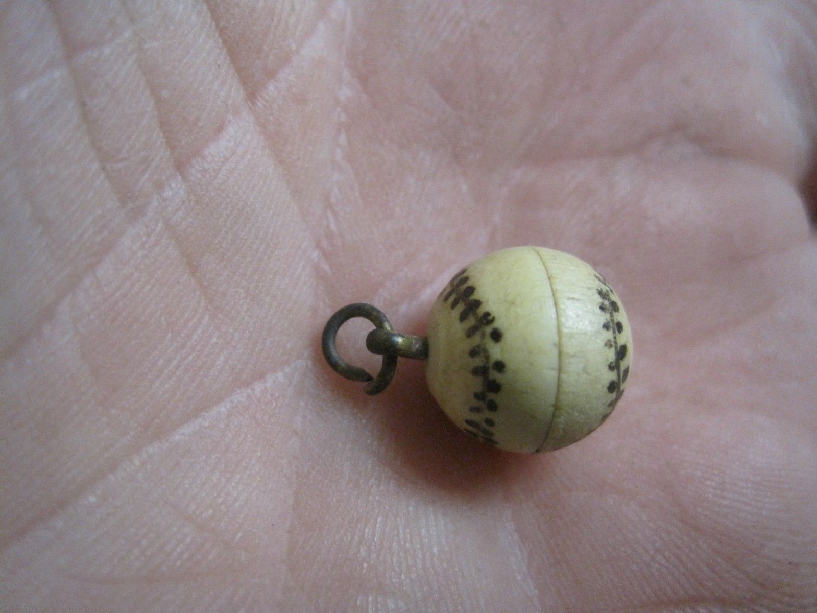 Antique vintage BASEBALL GLASS / CERAMIC BALL Charm Cracker Jack Toy Prize 20S ?