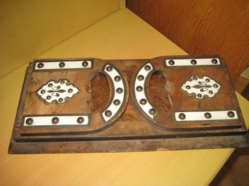 Title (ebay affiliate link): Antique Arts And Crafts Decorated Hardwood Sliding Book Ends: Damage to One End.