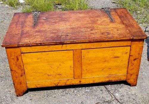 Title (ebay affiliate link): Antique Chest Box Vintage Solid wood Pine Wood Blanket Primitive Hinged Lid