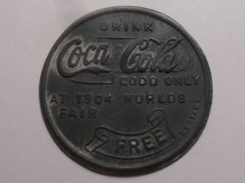 Title (ebay affiliate link): ANTIQUE "DRINK COCA COLA" "FREE BOTTLE" MADE BY LA STAMP "1904 WORLD''S FAIR!!!