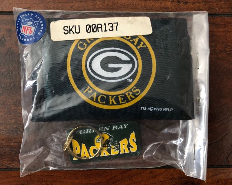 Title (ebay affiliate link): Vintage NFL Greenbay Packers Trifold Wallet And Keychain, 1993, Brand New