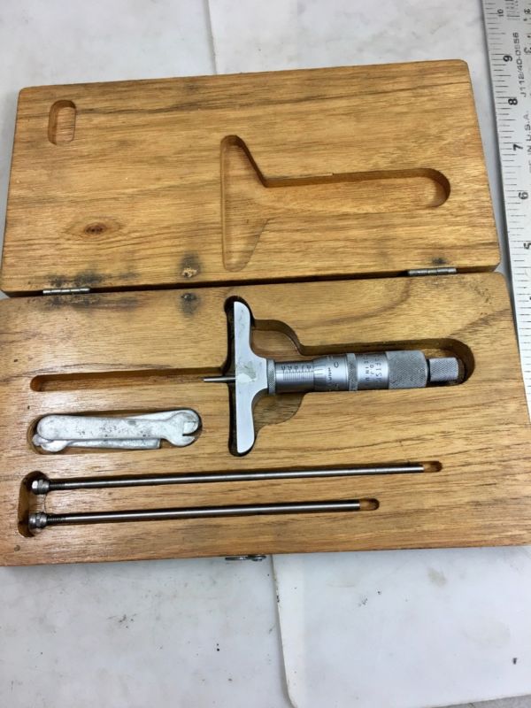 Title (ebay affiliate link): VINTAGE CRAFTSMAN 0-3 DEPTH MICROMETER, 2-1/2" Base, Wood Case, NO RESERVE!