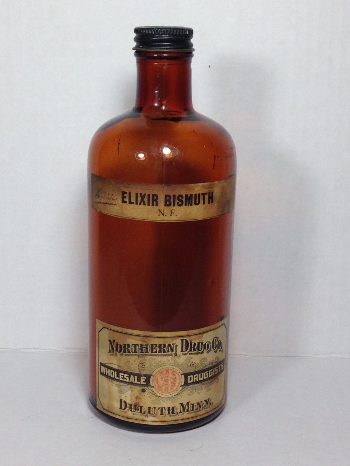 Title (ebay affiliate link): Antique Vintage ELIXIR BISMUTH NF Amber Bottle Pharmacy Apothecary Medical