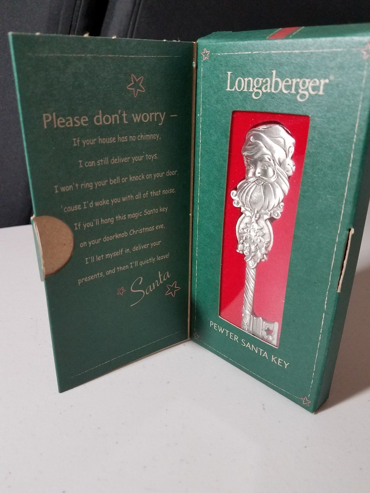 Longaberger Pewter Santa Key Ornament 2001, Christmas holiday ornaments