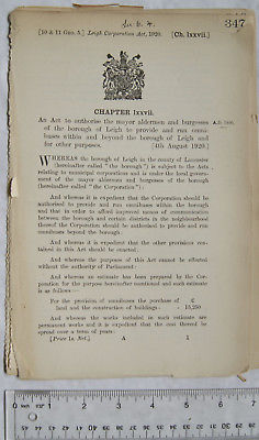 1920 Act of Parliament: omnibuses Leigh, Lancashire and beyond