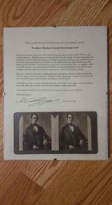 Title (ebay affiliate link): Fabulous ABRAHAM LINCOLN STEREOSCOPIC CARD + Letter of Provenance in glass frame