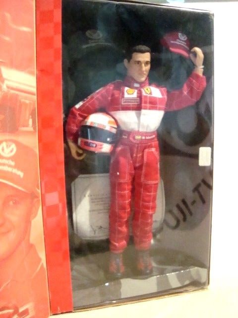 Title (ebay affiliate link): RARE LIMITED EDITION FERRARI LIVERY F1 DRIVER MICHAEL SCHUMACHER 11 3/8" TALL