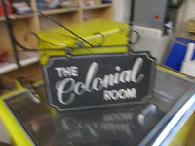 Vintage ANTIQUE HANGING METAL DOUBLE SIDED SIGN **THE COLONIAL ROOM** w/Bracket
