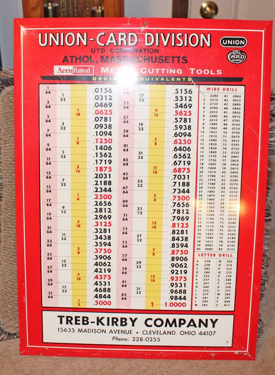 Title (ebay affiliate link): Vintage Metal Sign / UNION-CARD Cutting Tools Decimal Equivalents