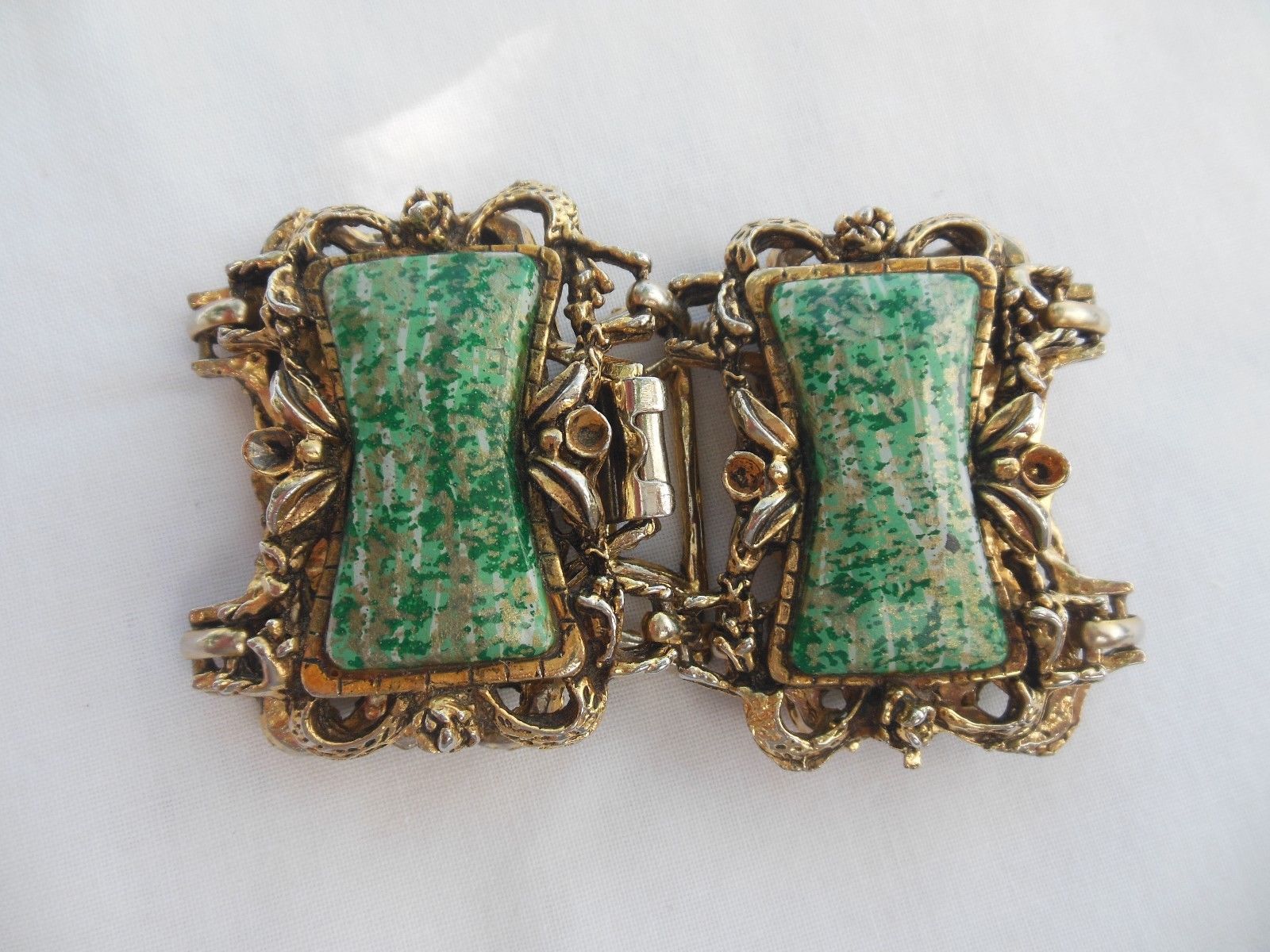 Title (ebay affiliate link): Chunky Antique Looking Metal Bracelet, Green Marbled Plastic Stones, Great Condi