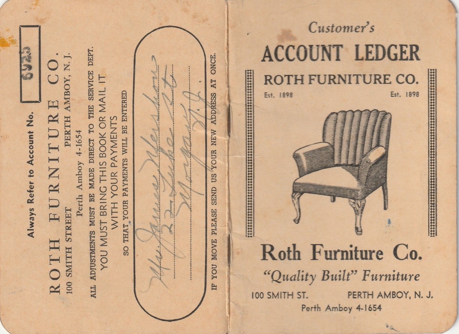 Ephemera ACCOUNT LEDGER PERTH AMBOY ROTH FURNITURE COMPANY CIRCA 1950