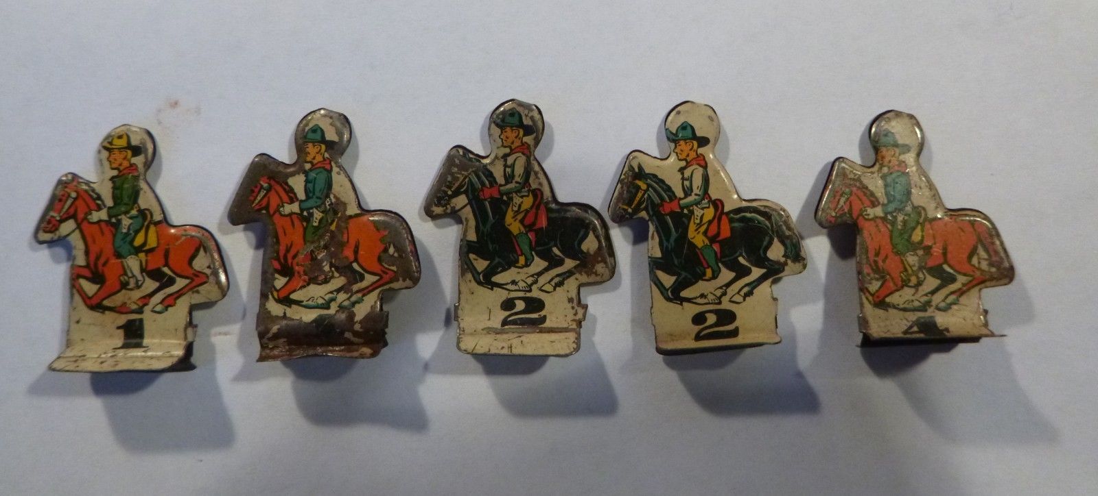 Title (ebay affiliate link): 5 Vintage Western Tin Toy Racing Game Numbered Pieces Horse Cowboy Calvary