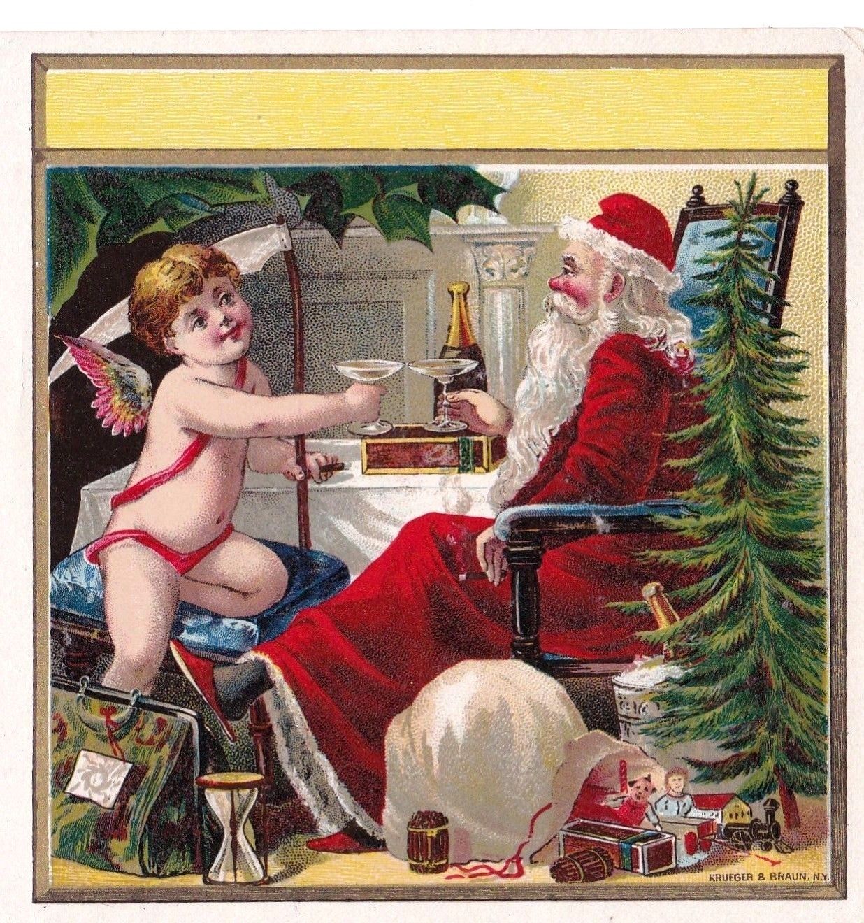 VINTAGE TRADE CARD CIGAR HOLIDAY CHRISTMAS SANTA CLAUS cherub angel