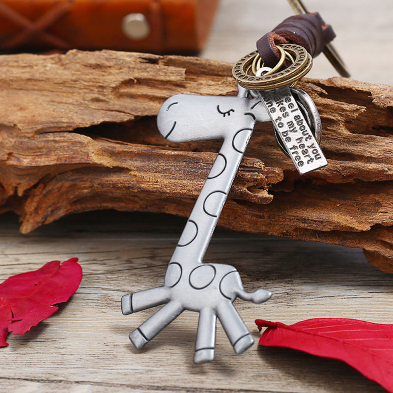 Fashion Unisex Giraffe Key Ring Hanging Ornament Birthday Antique Silver