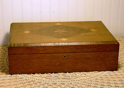 Title (ebay affiliate link): Antique Writing Slope Lap Desk lockable box inlayed NR